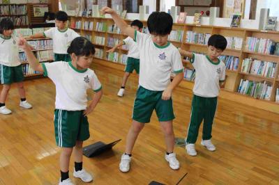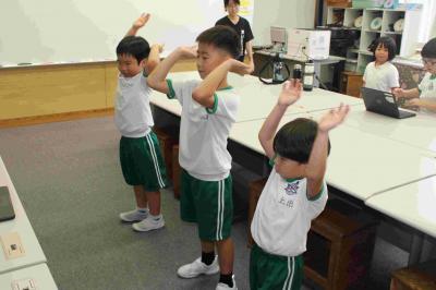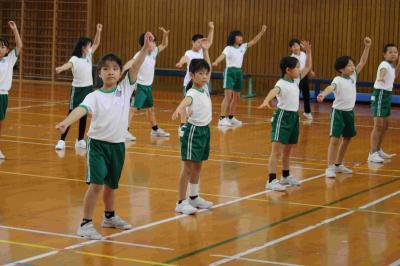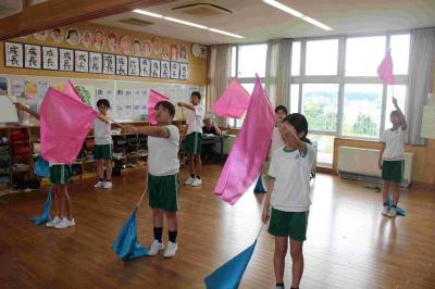 それから、応援の練習もはじまりました。まずは、6年生が5年生に、教えています!明日は、全体練習がありますね。たのむぞ!6年生。そして、5年生。