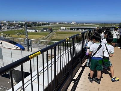 9月10日、秋の遠足に行きました。1,2年生の行き先は、トレインパークと若宮公園でした。新幹線を間近で見たり、説明を聞いたり、元気に遊んだりと楽しく充実した1日になりました。