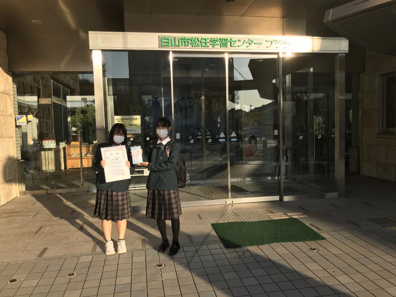11/10(木)に松任学習センターで行われた石川県高校放送コンテスト新人大会朗読部門にて、12Hの宮崎絵海さんが優良賞を受賞しました。