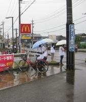6月22日(木)に、PTA本部役員、PTA指導委員、教員で自転車乗車マナー指導を行いました。雨だったこともあり、自転車で登校する生徒が少なく、指導らしい指導をすることはあまりできませんでした。ただ、少ないながらも、合羽を着て頑張って登校している学生を見て、こちらも頑張ろうと思う機会になりました。また、この日は自転車で登校しなかった生徒たちにも、取り組みをしている様子は伝わり、自転車乗車マナーについて改めて考える機会になったと思います。
