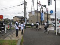 この日の早朝、PTA役員の方々をはじめ学校教職員参加で、駅から学校までの交差点を中心に自転車乗車マナー一斉指導を行いました。暑さのせいか普段より若干自転車通学の生徒が少なく感じましたが、並走、イヤホンなどマナー違反、危険運転などの生徒は見られませんでした。これからも安全第一で乗車して欲しいです。
