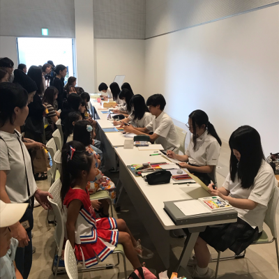 1年生は今回が初の似顔絵ボランティアでしたが、小さい子と話をしながら楽しい雰囲気で仕事をしていました。