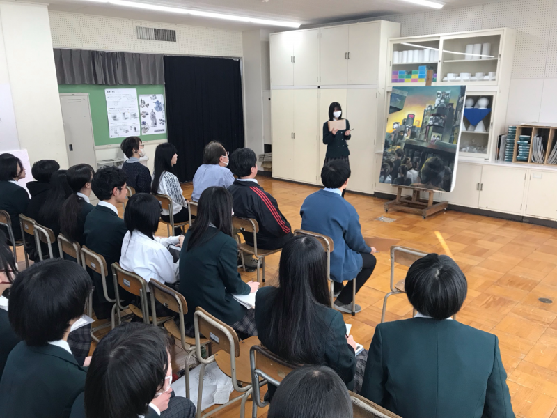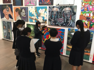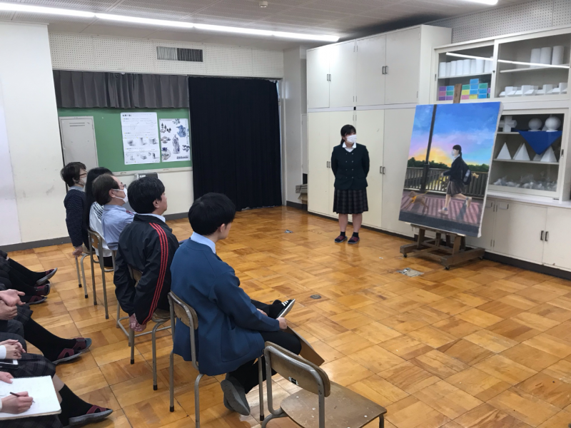 11月6日(木)午後、芸術コース美術専攻3年生の卒業制作合評会が行われました。3年間の集大成というべきこの制作は、夏からの長い期間を費やして各々が試行錯誤し挑戦した大作です。