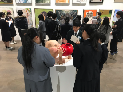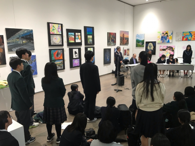 11月3日(月祝)、金沢21世紀美術館で開催されていた「高校生の美術展」が最終日を迎え、午後より生徒作品交流会と表彰式が行われました。本校からは代表者のみの作品交流会でしたが、その分、お互いの作品をゆっくり鑑賞しながら会話ができる空間でした。