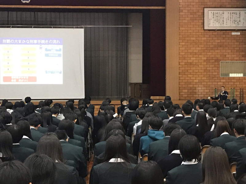 11月11日LHRの時間に、全生徒対象に「自転車の交通反則通告制度」について、小松警察署交通課の方より説明をしていただきました。来年4月より自転車の交通違反に青切符が導入されるというものですが、その仕組みについてとても詳しく説明していただきました。特にスマホを見ながらの自転車の運転の危険さや反則金について注意を受けました。また、市立高校に自転車で通う際の通行の仕方や注意についても教えていただきました。