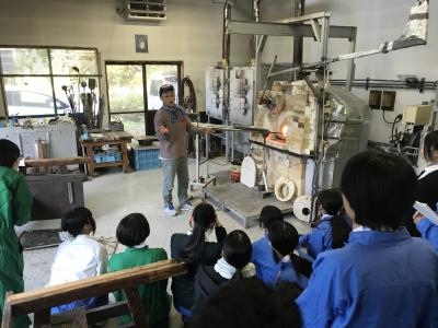 11月14日(金)、吉野工芸の里にあるガラス工房蕾にて美術専攻1年生を対象とした吹きガラスによる器作りの実習をしました。