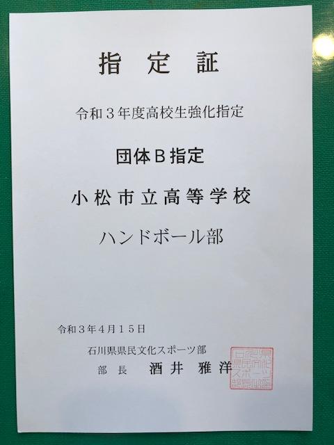 ハンドボール部は、今年度の「高校生強化指定」を受けました!