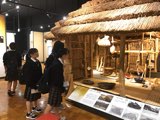 昼食後「北海道博物館」へ移動、アイヌ文化や北海道の歴史の展示を見学しました。先日の中間考査の範囲にあった続縄文文化の展示をじっくり読んでいる生徒や、アイヌ民族の楽器を体験している生徒もいました。