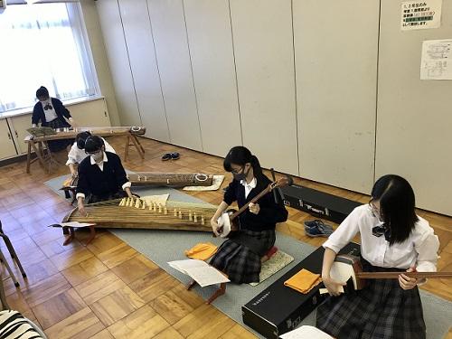 今年は全国こども歌舞伎まつりや本校の文化祭が中止、合同発表会も録画出演となりとても残念でした。現在は1・2年生で11月に開催される次年度全国総文の選考会に向けて練習しています。今後は全国こども歌舞伎まつりの「勧進帳」で演奏する三味線の練習にも力を入れていきます。