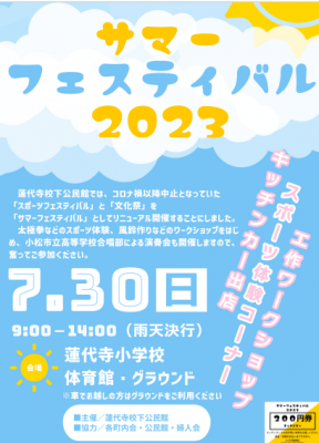 7月30日、蓮代寺校下公民館主催のサマーフェスティバルに出演させていただきました。
