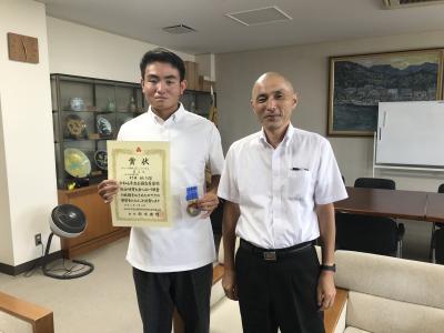 34Hの村井君が、インターハイのローイング(ボート)競技 男子シングルスカルで全国3位となり、その報告に、校長室を訪れてくれました。