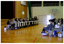 学校公開日のこの日、午前中を授業公開、午後からは本校OBを招いて「仕事パネルディスカッション」そして「ロシア・アンガルスク市青少年交流事業 報告会 」が行われました。「仕事パネルディスカッション」では、社会人になったOBから、高校生の頃の自分や現在の自分についてを語って頂きました。
