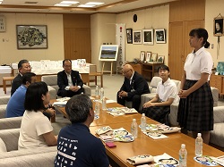 8月22日 今回来校された日本大学芸術学部の方々と、本校から 11H板狩 美歩さん(美術専攻)、21H上根 夢さん(音楽専攻)とで、小松市役所へ表敬訪問に伺いました。