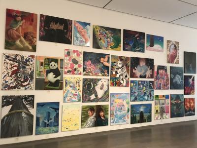 県総文が終わりました。金沢21世紀美術館で展示されていた作品たちが学校へ帰って来て、このまま倉庫行きも寂しいので、美術館に来れなかった人にも見てもらおうとエントランスギャラリーを開催しています。難しいことは考えず、「これ、何か好き」「この絵カワイイ」「この作者に未来を感じる」など気楽な気持ちで、多くの人にゆっくり見てもらいたいです。