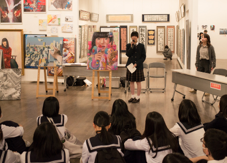 日本画、洋画、彫刻などの分野の多くの優れた作品をみて生徒たちはこれから描く自身の作品の構想に役立てていきます。