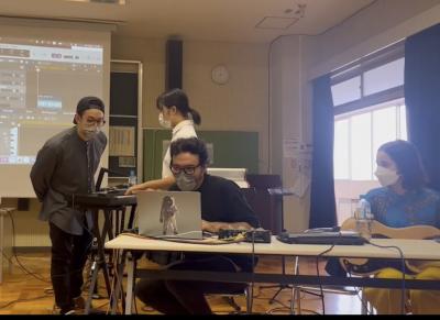パソコンを使っての音楽制作のプロセスを体験しながら学び、またリリースする方法や制作に関わる仕事(職種)について教えていただきました。