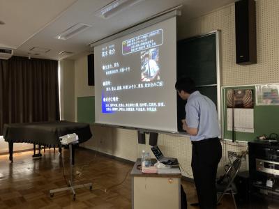 美術の教室では今やっている内容の説明をし、音楽の教室では本校生徒達の合唱を披露しました。また、本校の2年生が英語で市立高校を説明したり、留学体験の説明をしました。国府中学校の生徒は、メモを取りながら真剣に聞いてくれました。また、「紹介動画を見て楽しそうだったので、入学したいと思いました。」という感想を述べていただきました。