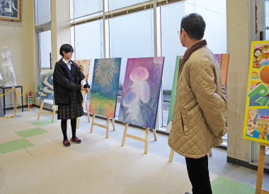 この日の午後より、芸術コース美術専攻3年生の卒業制作合評会が行われました。3年間の集大成というべきこの制作は、夏からの長い期間を費やして各々が試行錯誤し挑戦した大作です。