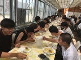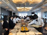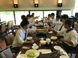 昼食はジンギスカンです。初めてラム肉を口にする生徒もいましたが、聞いていたより美味しいと喜んで食べていました。ビュッフェ形式で他にも色々な料理があり、昼食時間が足りないくらいでした。