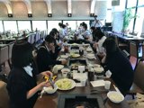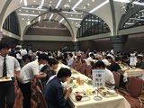 夕食は、グループごとに、思い思いの場所で北海道の味を楽しんだようです。