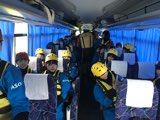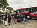 ホテル高層階の眺めのよい会場で朝食をとりました。これまで3日間目一杯楽しんでいたため疲れが出ているのか、移動中のバスの中はほとんどの生徒が眠っていました。