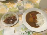 昼食の「野菜たっぷりカレー」は、ごろっとした大きなジャガイモが甘いと好評で多くの生徒がおかわりをしていました。