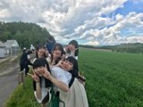 昼食会場までは美瑛のパッチワークの路を通りました。CMのロケ地等が多数あり、雄大な北海道の美しさを感じました。さらにジェットコースターの路では大きく波打つアップダウンの直線道路に生徒達は大歓声をあげていました。