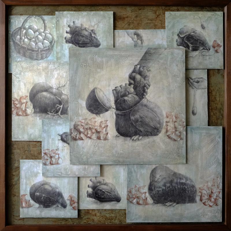 石川県代表として出品した「オシリスの手引書」(S50号)は命をめぐる物語として複数の画面を一つの作品にしたものです。(下の作品写真はWEB用に撮影した後加筆したものです。) WEB SOUBUNは全国総文祭高知大会HPから見ることが出来ます。