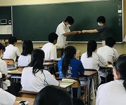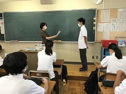 8月18日に行われた2年生のボキャブラリーコンテスト(英単語100問)で各クラス成績上位者3名と、学校全体の成績優秀者に、校長先生から賞状と副賞が贈られました。2週間程度の短い夏休みの中で、英単語に取り組み、成果を出したことは非常に素晴らしいことだと思います。今後も頑張った人が評価される機会を設けていきたいと思います。