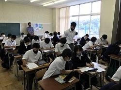 教育実習は3週間目を迎え、4名の実習生が最後の総仕上げの研究授業に取り組んでいます。多くのギャラリーに見守られながら大変緊張する場面ですが、落ち着いて授業を行っていました。しっかりと教材研究をしていることが伝わる内容でした。