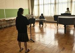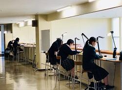 1年生の芸術コース音楽専攻生は「ソルフェージュ」の試験もありました。美しい歌声が実習棟4階の廊下に響いています。