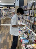 店員の方に説明を受けた後、まず、7月に行った全校読書アンケートでリクエストされた本を探し出し、その後、図書館にあったらよいと自分で思う本を選定しました。ただ、好きな本を手にとるだけではなく、「このリクエストの本は実際、見てみると学校の図書室にはふさわしくないのではないか?」などきちんと自分で判断し、探している図書委員を見て、とても頼もしく感じられました。