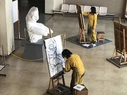 毎年恒例、芸術コース美術専攻油画専科の新3年の春課題が始まりました。ホールにある「ベルベデーレのトルソ」(トルソはイタリア語で上半身の胴体。バチカンのベルベデーレ(展望室の意)に置かれているのでこの称がある)のデッサンです。美大の学生が使う大きな紙のサイズに挑戦します。