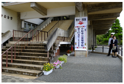 夏休み中に行っていた第一体育館の照明LED化工事が終わりました。生徒は、明るい照明の下で体育の授業をしています。また、入口の扉も引き戸になり大きく開くため、出入がしやすくなっています。