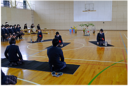 1年生「総合的な学習の時間」の一環として、文化部主催の日本文化理解講座が行われました。茶道、華道、美術、書道、邦楽、合唱、放送の各部がそれぞれパフォーマンスを披露し、講座を盛り上げました。