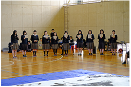 20日(水)一、二年生全員参加の球技大会(男女バスケットボール・女子バレーボール及びバドミントン、男子卓球の五種目)でクラス対抗戦が行われました。生徒は温かい春の一日を思い切り体を動かし、声を出して応援し若い力を十分に発揮していました。終了後、最近の競技会などで活躍のあった部活動チームへの表彰伝達式がありました。