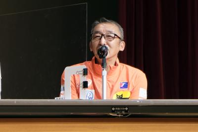この日の午後、小松市公会堂で創立記念講演会が行われました。今回の講演者は、2020東京オリンピックのハンドボール日本代表で出場した本校出身の石立 真悠子氏と26年間本校で勤務し、現在、ハンドボール女子日本代表監督 の古橋 幹夫氏の2名にお願いしました。「世界に挑む」と題して、石立さんは、高校時代から日本代表時代、ハンガリー時代などこれまでの経歴をもとに挫折や転機などを振り返りながら語って下さいました。高校時の監督であり恩師の古橋先生は時折、話のホロー役としてアシストし、的確なパスを送っていました。