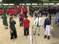 市高体育祭ではなんといっても3年生が身に纏う衣装と、作成した団旗が注目となっています。それぞれが考えたコンセプトの衣装で身を包んで3年生は同じ団の1、2年生と共に応援合戦のダンスパフォーマンスに臨みます。