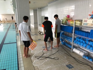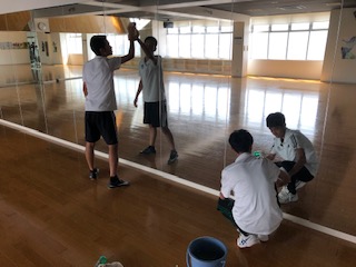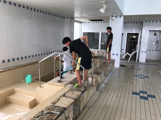 スポーツジム『ソラーレ東洋』さんで、トレーニング器具やお風呂等の清掃を行いました。