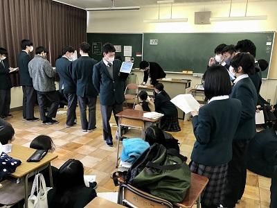 2月17日(水)の総合的な探究の時間に、『課題研究発表会』を実施しました。新型コロナウイルス感染防止のため、学年全体での発表会とせず、各教室でホーム単位での発表会としました。