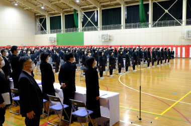 今年も昨年同様コロナ対策を万全とするため、保護者人数制限、在校生は代表のみとし、時間も短縮させる形で進められました。それでも3年生にとっては、学校や先生、そして友達との最後の大切な時間です。式後も校内には名残惜しむ卒業生の姿が多く見られました。