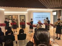 2月10日(土)小松市観光交流センター「Komatsu九」ギャラリー&イベントエリアにて開催された上記発表会に芸術コース生が参加しました。発表会は音楽専攻生の金管8重奏「銀河鉄道999」の演奏から始まり、小松市内5つの高校が小松市の発展につながる研究の成果発表でどれも興味深いものでした。最後に美術専攻生の発表が行われ、日本画、デザイン専科それぞれの代表生徒が自作の作品解説と制作を通した学び、これからの課題について発表しました。会場に設けられた展示したコーナーに作品も展示しました。作品だけではなく言葉によって思いを伝える機会となりました。