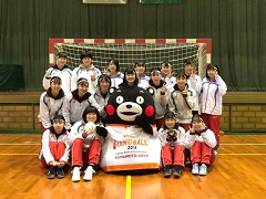 キレのあるくまモン体操やハンドボールのシュート練習などで交流しました。