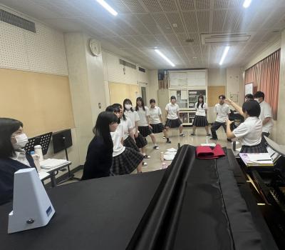 1日目に続き、高文連総合ステージに向けてパート練習に加え、ボイストレーニングを行いました!