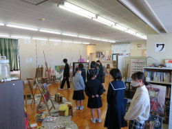 この日、芸術コース体験入学が行われ、たくさんの中学生と保護者の方に参加頂きました。美術専攻では、2年生を中心とした在校生による本専攻の概要説明とデッサン講習が行われ、石膏幾何形体をモチーフに、形の見方や描き方などをポイントに進められました。2年生は、この日のために説明と指導方法の打ち合わせを念入りに行い、中学生に理解してもらえるよう段取りとサポート体制にも工夫をしました。個人指導も積極的に声掛けをし、少しでも参加者の中学生に伝わるよう頑張りました。