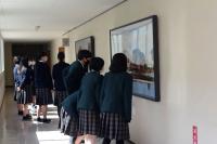 本校芸術コース美術専攻の特別講師西房浩二先生(洋画家)から寄贈していただいた油彩画を本校会議室前廊下に展示しました。大作「TORN」と「Castelnaudary」を専攻生が鑑賞しました。これからもいつでも間近で見ることができる本物の教材として活用させていただきます。ありがとうございました。