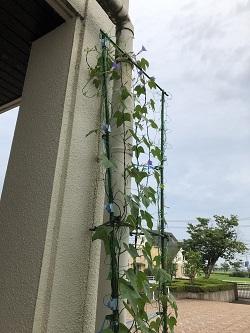 また、同じ玄関前のNAOKO☆あさがおは、建物の2階の高さまでつるを伸ばし、花を咲かせています。花が咲くタイミングが早朝5時頃だそうで、なかなか写真に収めることが出来ませんでしたが、学務員さんに写真を提供いただきましたので、ぜひご覧ください。