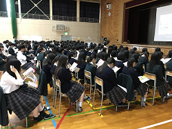 2年生に対し、大学入学共通テストの英語民間試験の受験に必要な、共通IDの発行申し込みについて説明会を行いました。