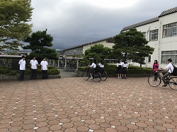 地元の方々やPTAの皆さん、教職員が挨拶やマナーの声かけをしています。生徒も公安委員を中心に参加しています。生徒の皆さんは交通ルール、自転車乗車マナーを守ると共に、気持ちの良い挨拶をしましょう。