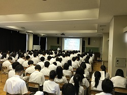 1年生では、文系理系選択についてや、高校卒業後の進路先を考える上で知っておいて欲しいことなどを説明しました。2年生では、新しくなる大学入試制度を中心に説明をしました。